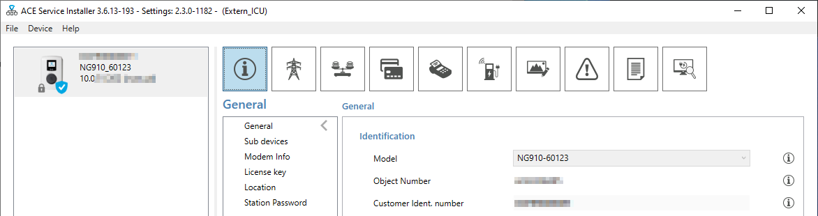 Tragen Sie im "ACE Service Installer" unter General als Customer Ident. number die Seriennummer des Geräts im LADEportal ein (bspw.: OCPP00000123).